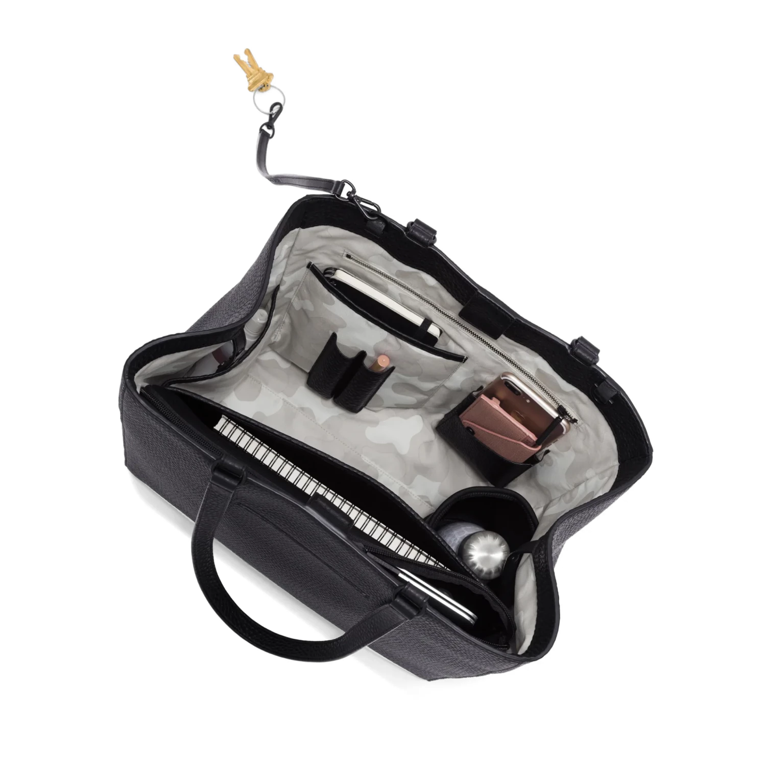 Meet the elevated upgrade to our signature tote. Inspired by late nights at the office and impromptu weekend adventures, the black Allyn Tote will elevate your style as fast as you can grab your phone from the exterior slip pocket. While the magnetic tab closure gives you more space when you need it, the interior snap fastener provides additional security and an alternative way to carry. A neoprene laptop sleeve and bottle holder ensure your things are always protected, while thoughtful interior pockets keep everything organized and ready to go.