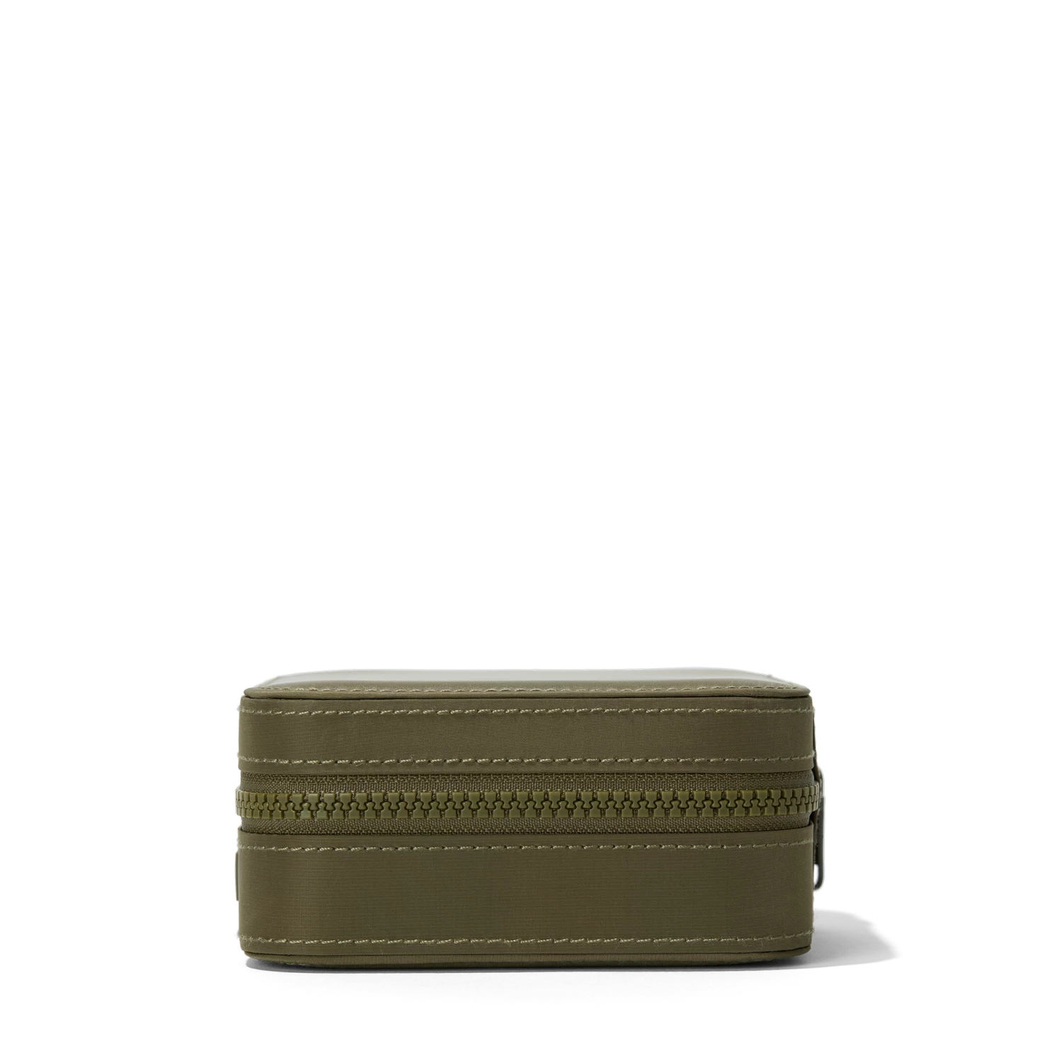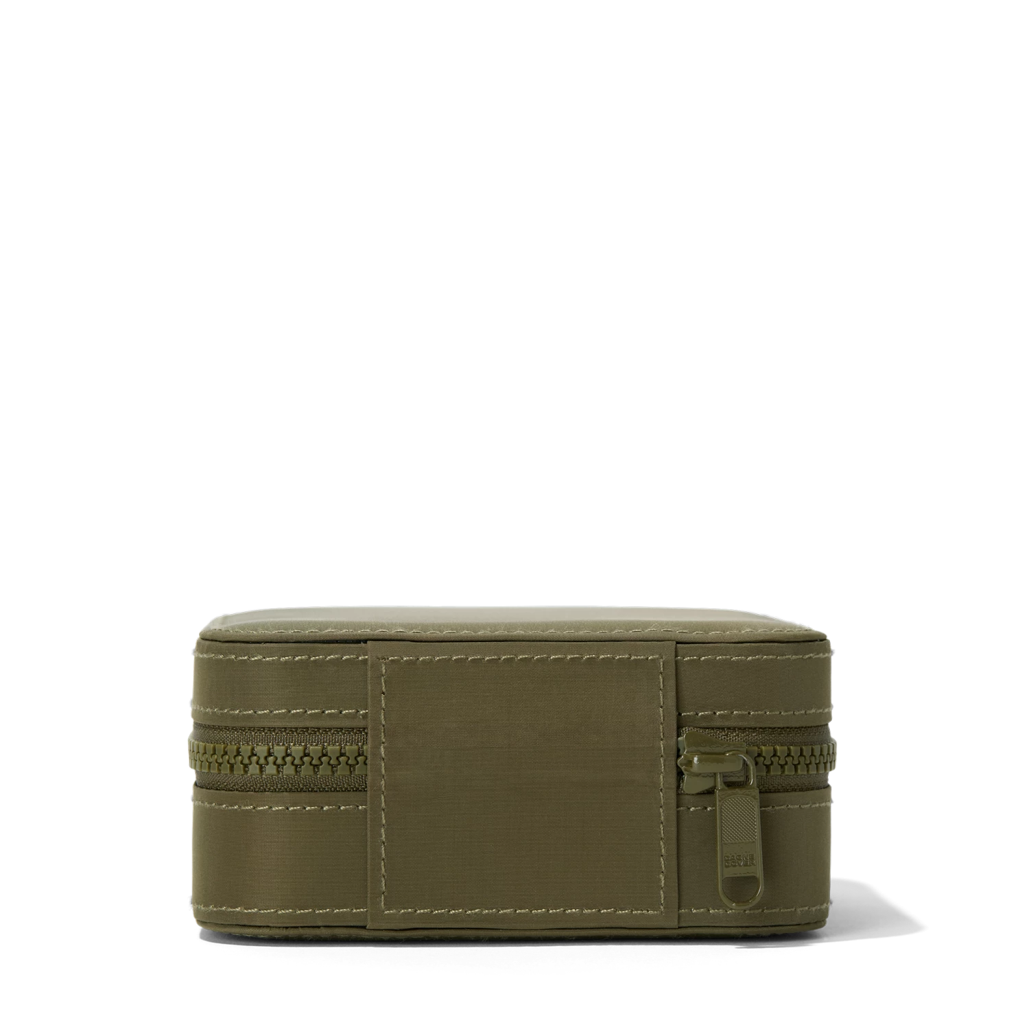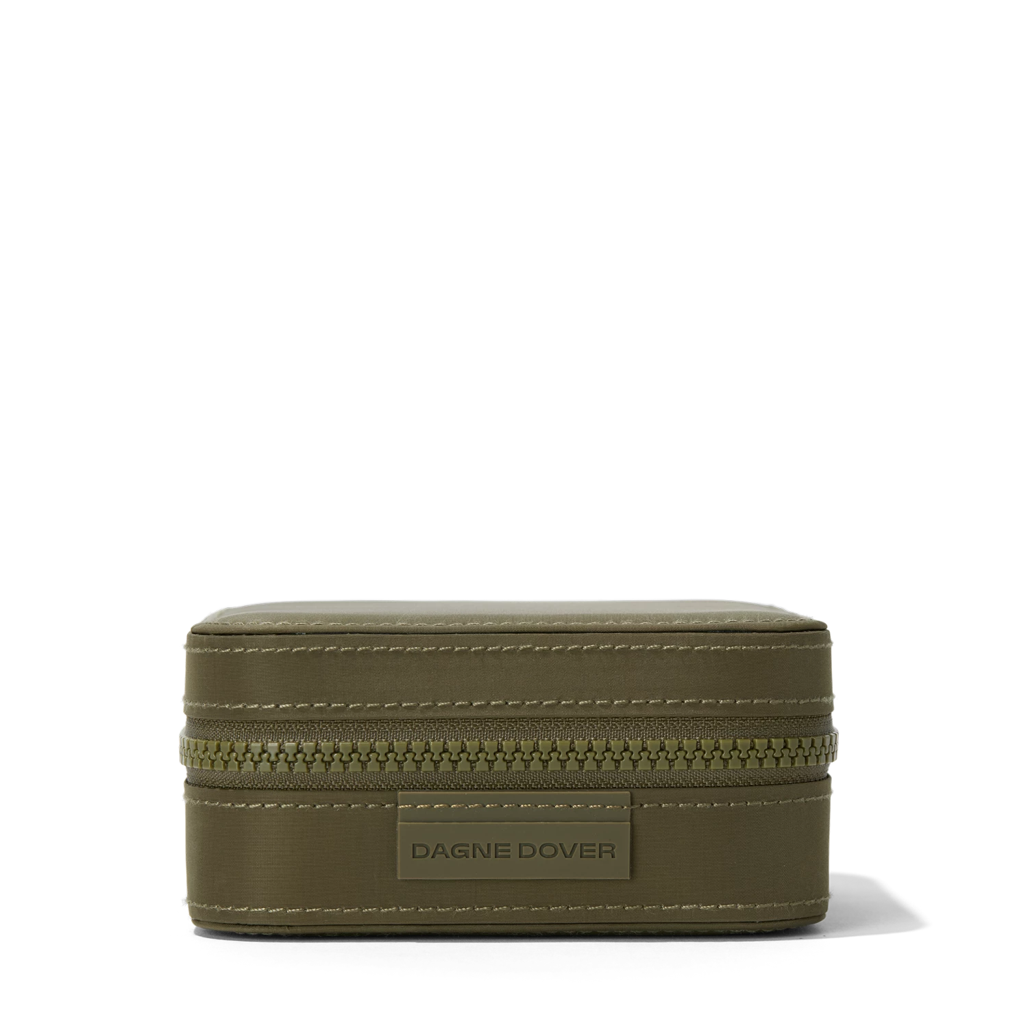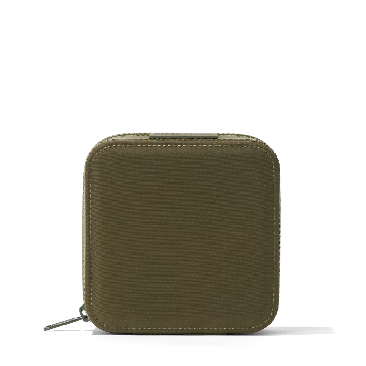 For those times when you travel and don’t want to leave your shine behind. Meet the Large Frankie Jewelry Case in Dark Moss. With a soft, microfiber-lined interior featuring smartly designed loops, straps, and slots, this zippered jewelry travel case keeps your favorite pieces in place, protected, and artfully organized. Lightweight and light on the planet, this eco-friendlier travel jewelry organizer is made with Repreve® recycled polyester created by repurposing 2 plastic water bottles. Features a luxe yet low-key shine. Loves going places, but also feels right at home on your dresser.
