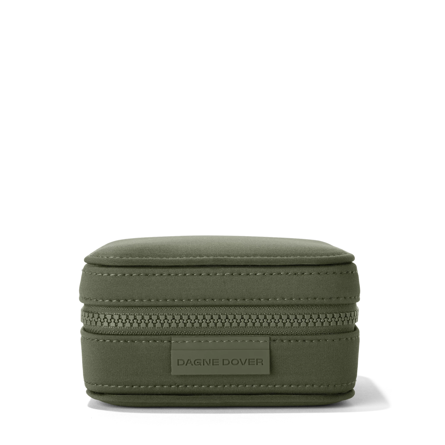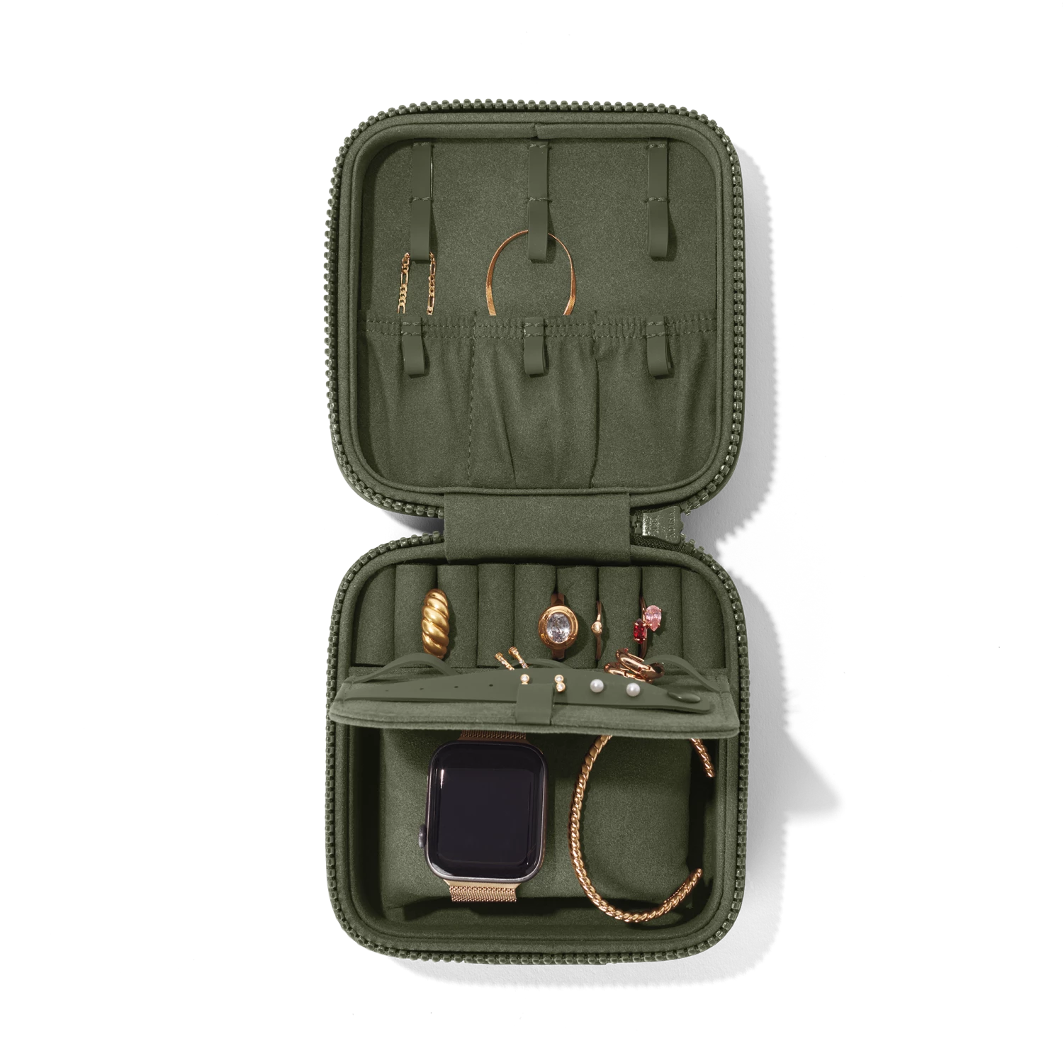 For those times when you travel and don’t want to leave your shine behind. Meet the Large Frankie Jewelry Case in Microchip green. With a soft, microfiber-lined interior featuring smartly designed loops, straps, and slots, this zippered jewelry travel case keeps your favorite pieces in place, protected, and artfully organized. Lightweight and light on the planet, this eco-friendlier travel jewelry organizer is made with Repreve® recycled polyester created by repurposing 2 plastic water bottles. Features a luxe yet low-key shine. Loves going places, but also feels right at home on your dresser.