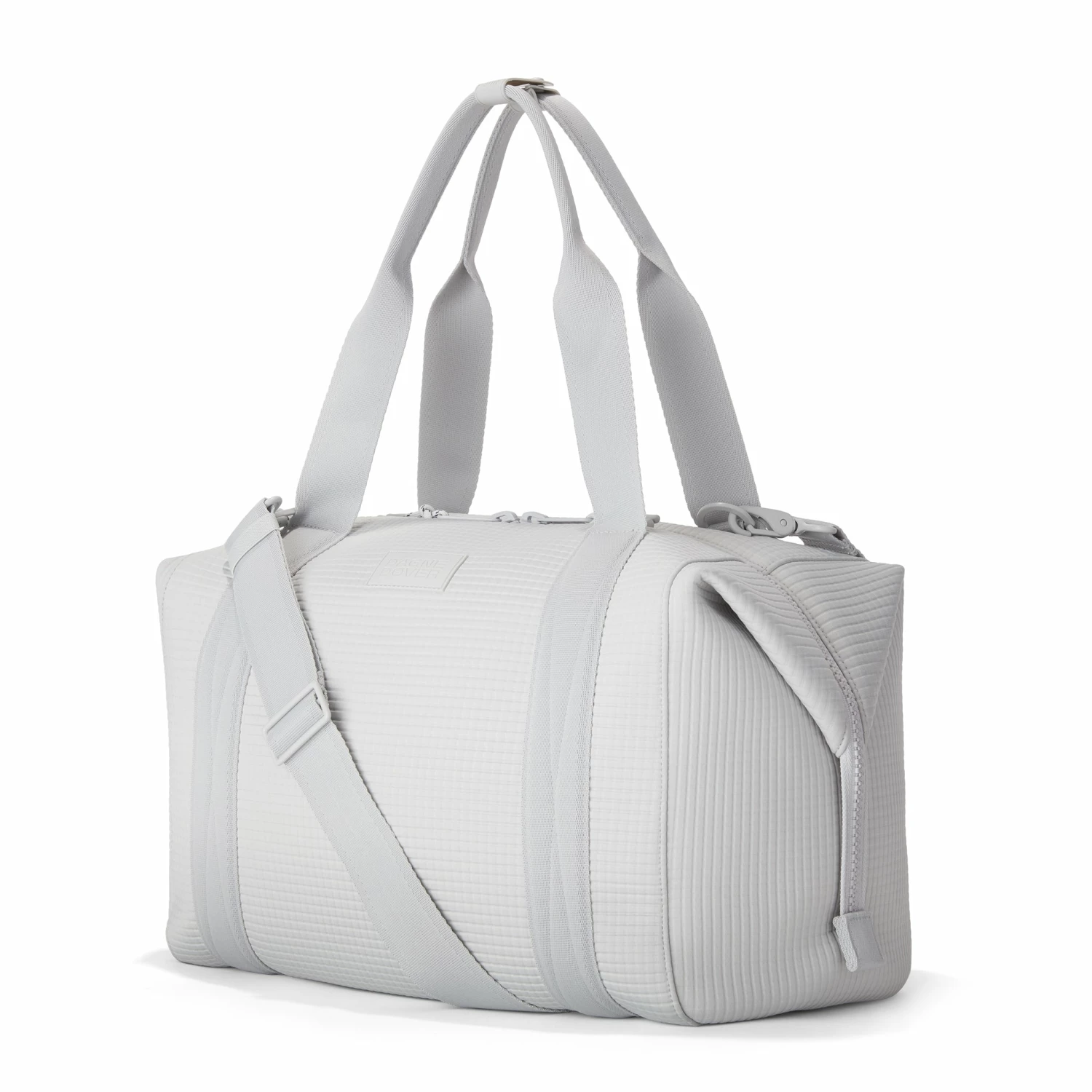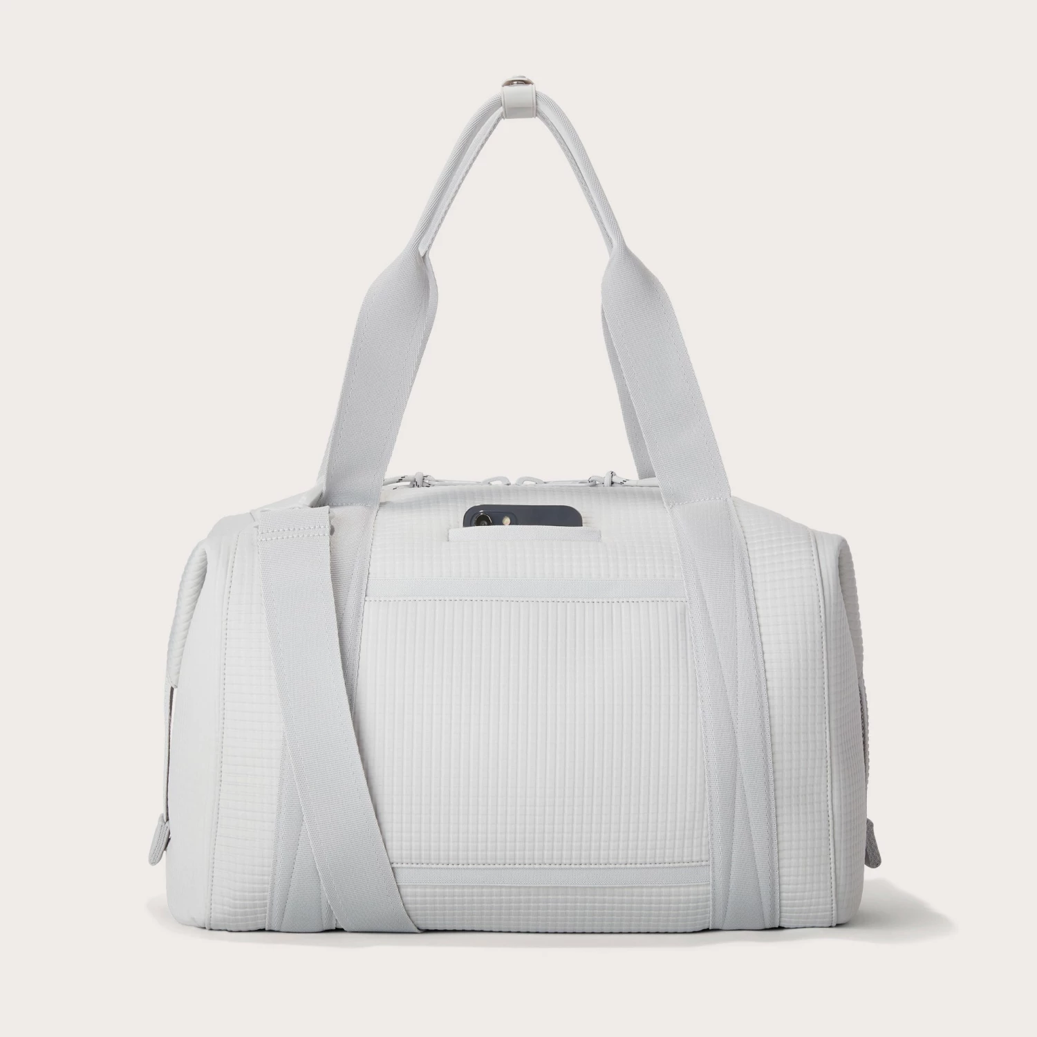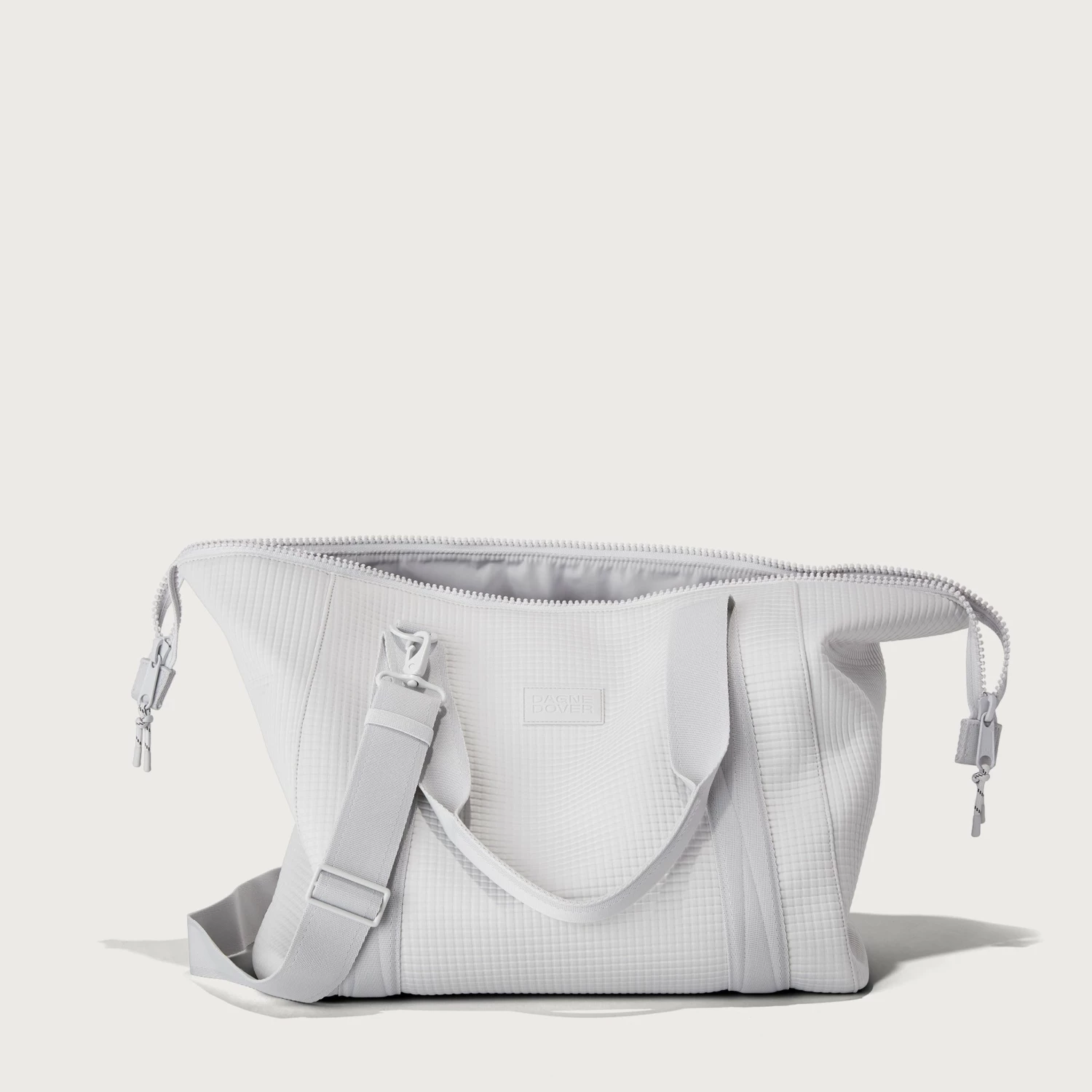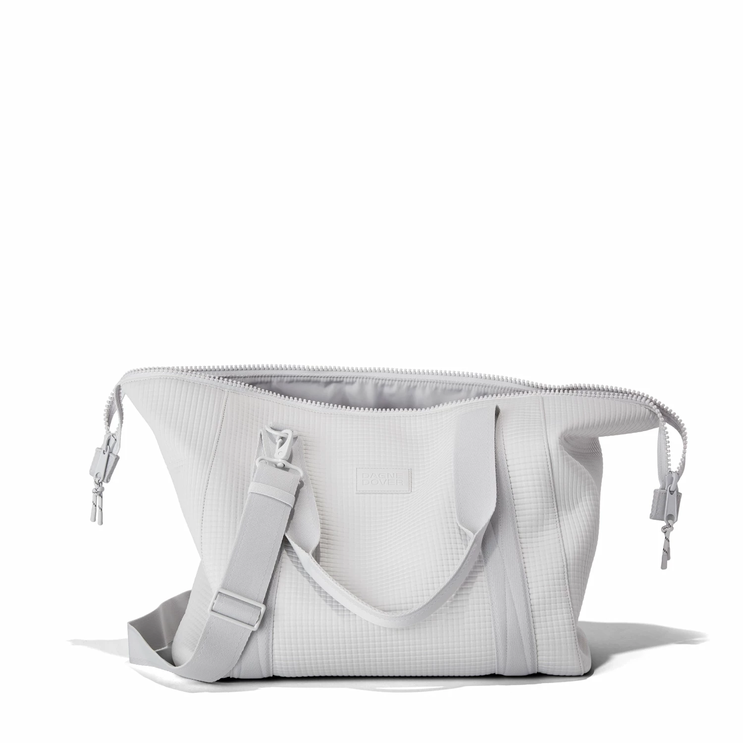The weekend is nigh and youre ready for a much-needed getaway in light grey. Whether youre off to commune with nature in a cabin by the woods or jetting to Paris for a stylish urban excursion, our large Landon Carryall in Waffle Fog has you covered. This lightweight bag is designed to support you on any journey, modest or immense, and unsnaps at the sides to create more room for any unexpected finds you cant leave behind. It also includes a padded laptop sleeve, an air mesh pouch for all your essentials and a water bottle pocket so you can stay hydrated in-flight or on a hike. A stretch key leash, shoe duster and extra interior pockets are bound to keep you organized, and the handy pocket on the back of the bag is the perfect place to tuck away your passport or phone.