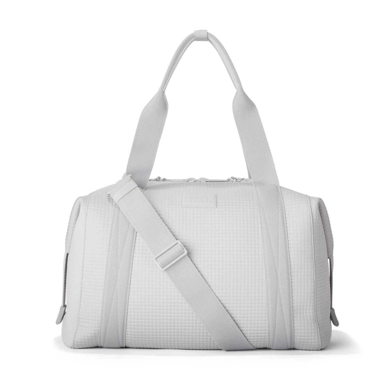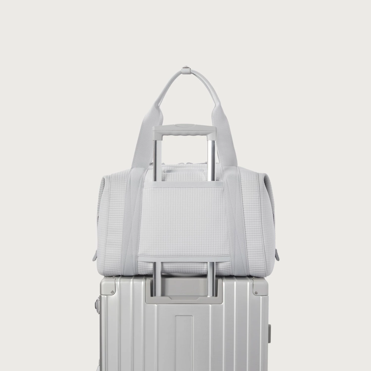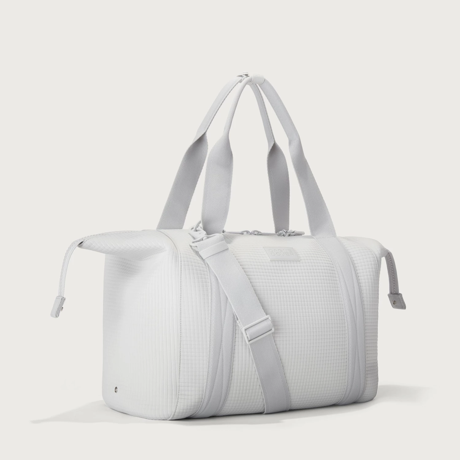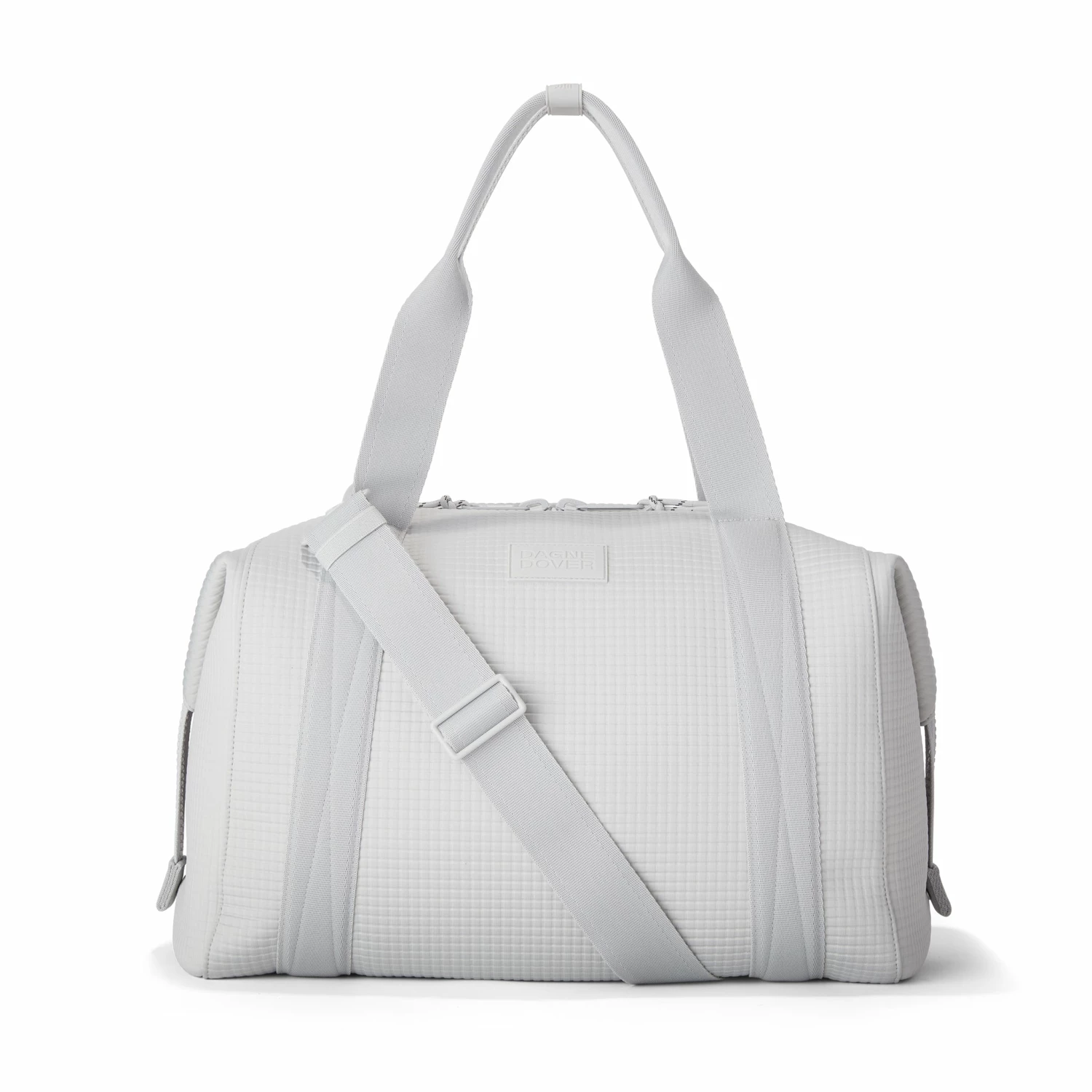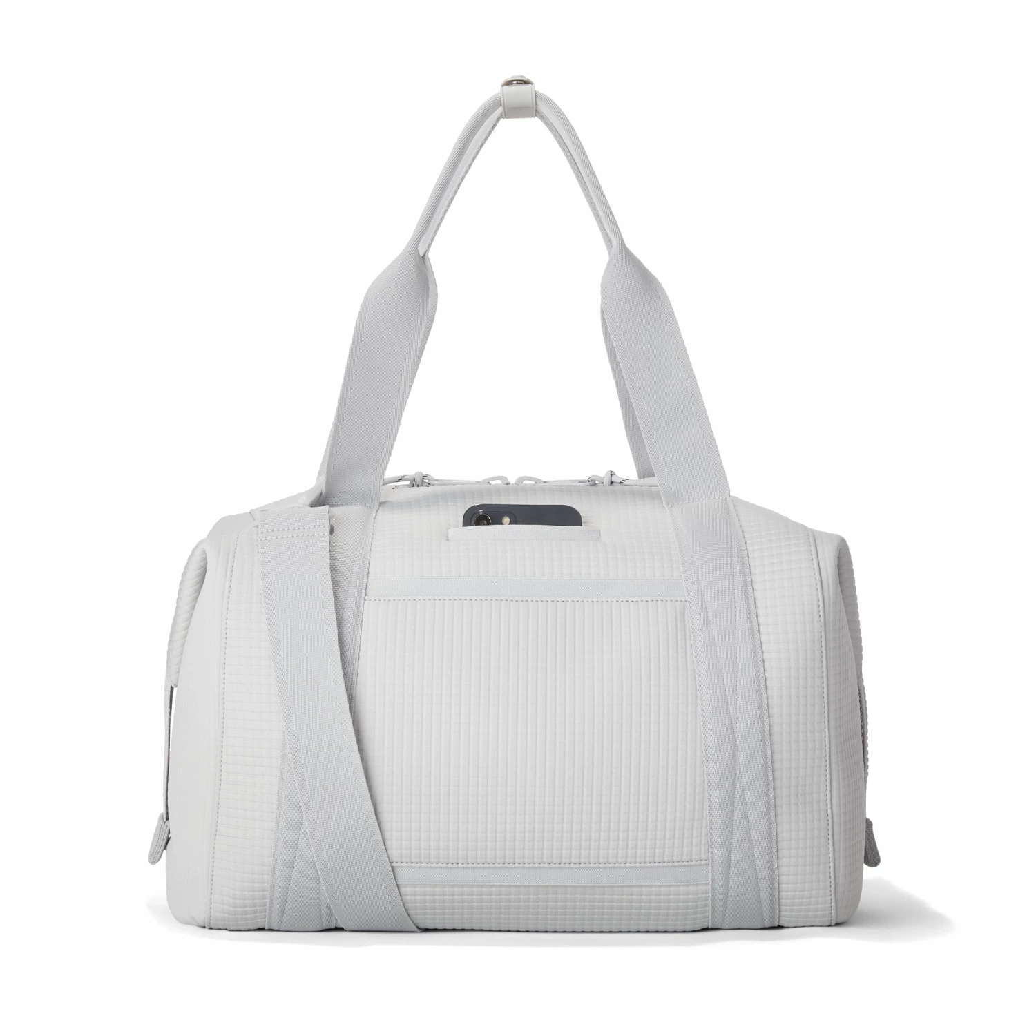 The weekend is nigh and youre ready for a much-needed getaway in light grey. Whether youre off to commune with nature in a cabin by the woods or jetting to Paris for a stylish urban excursion, our large Landon Carryall in Waffle Fog has you covered. This lightweight bag is designed to support you on any journey, modest or immense, and unsnaps at the sides to create more room for any unexpected finds you cant leave behind. It also includes a padded laptop sleeve, an air mesh pouch for all your essentials and a water bottle pocket so you can stay hydrated in-flight or on a hike. A stretch key leash, shoe duster and extra interior pockets are bound to keep you organized, and the handy pocket on the back of the bag is the perfect place to tuck away your passport or phone.