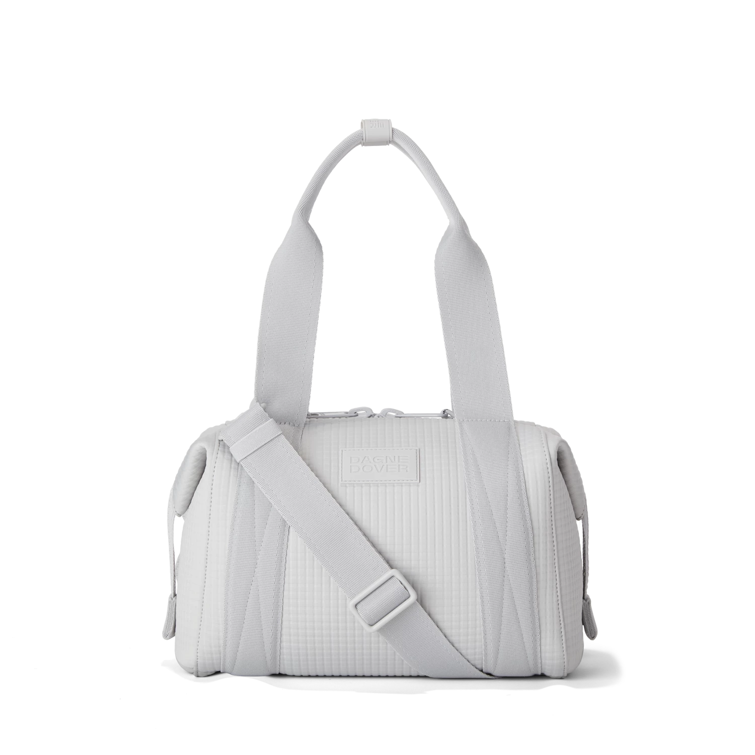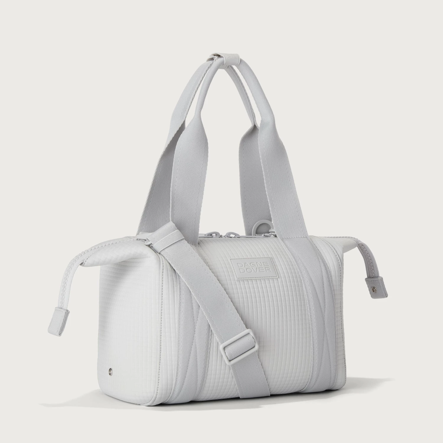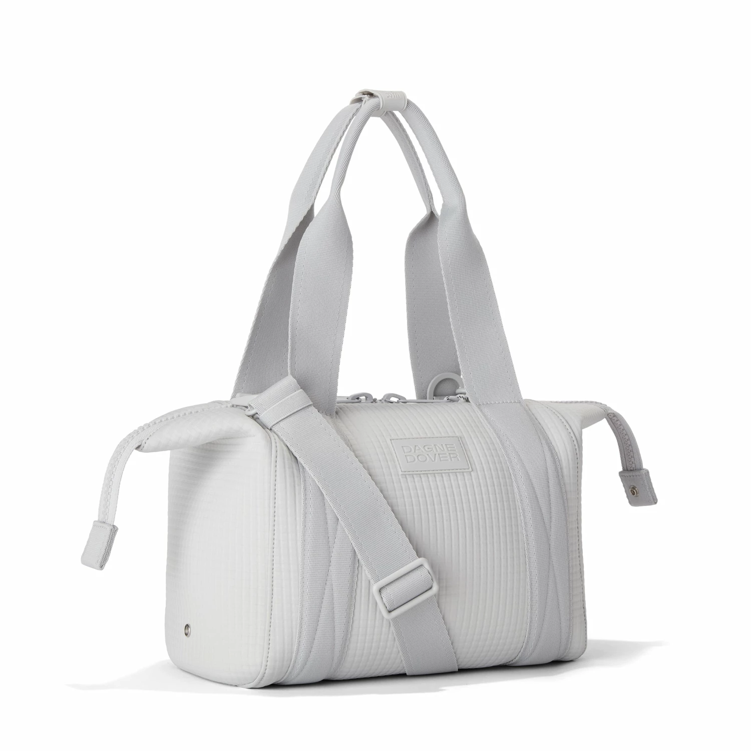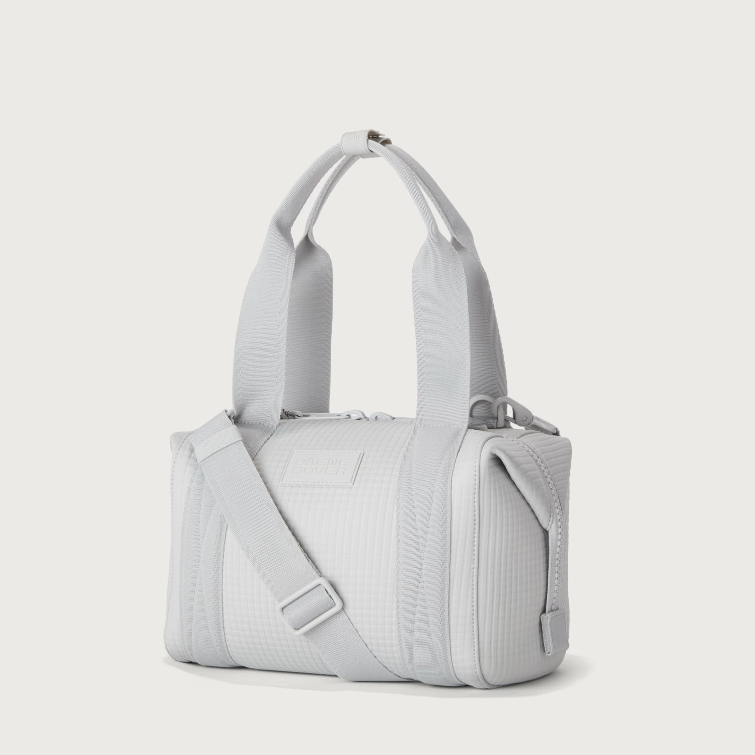 Our small Landon Carryall in Waffle Fog is the ultimate duffle bag for a full day ahead. Its petite size wont impede on a daily commute and when unsnapped at the sides, has enough space to hold a change of clothes for any post-work activity or to pick up a few things at the farmers market on weekends. The small Landon in light grey includes a stretch key leash and practical pockets for a tablet, charging cords and water bottle. A detachable cross-body strap provides more ways to carry it all with ease.