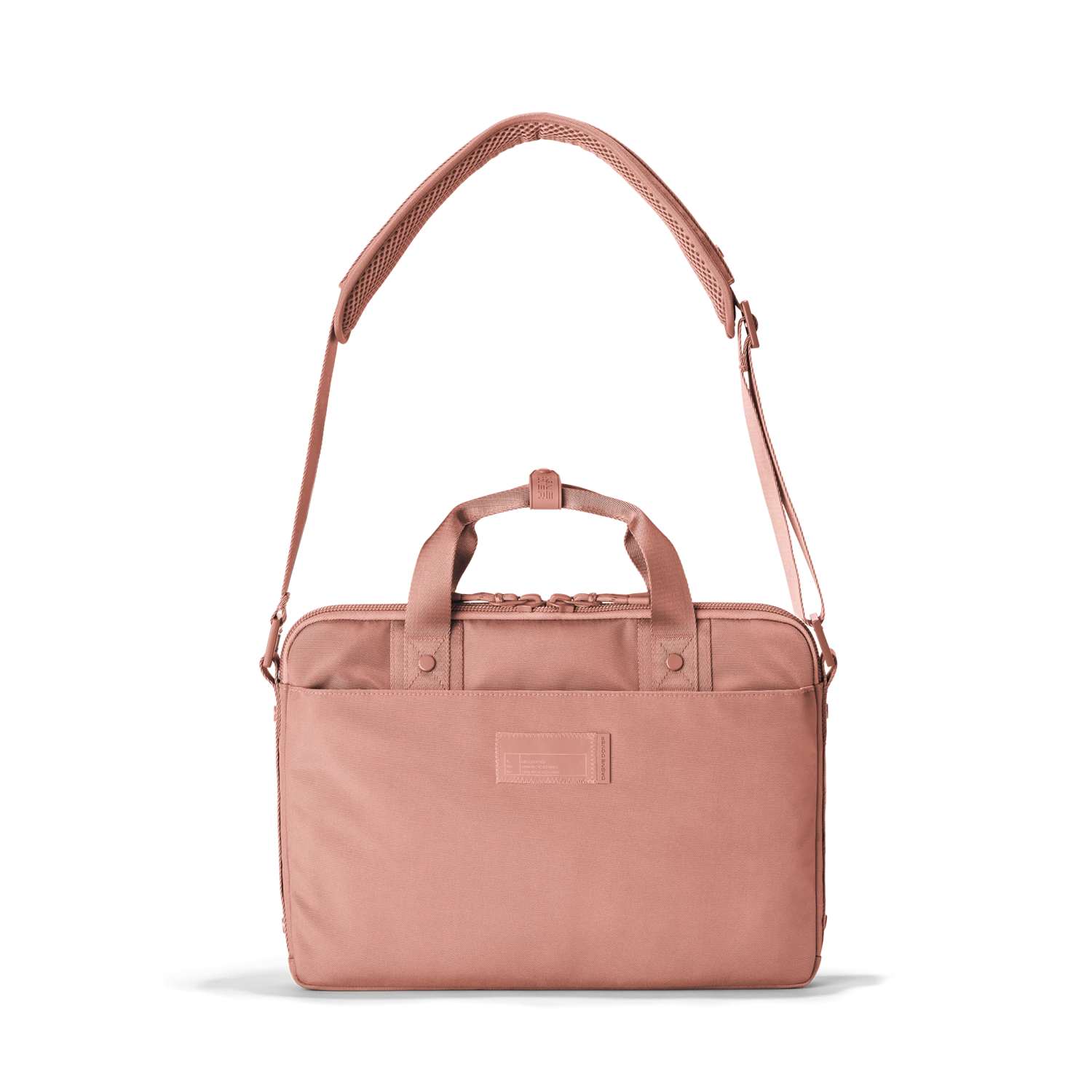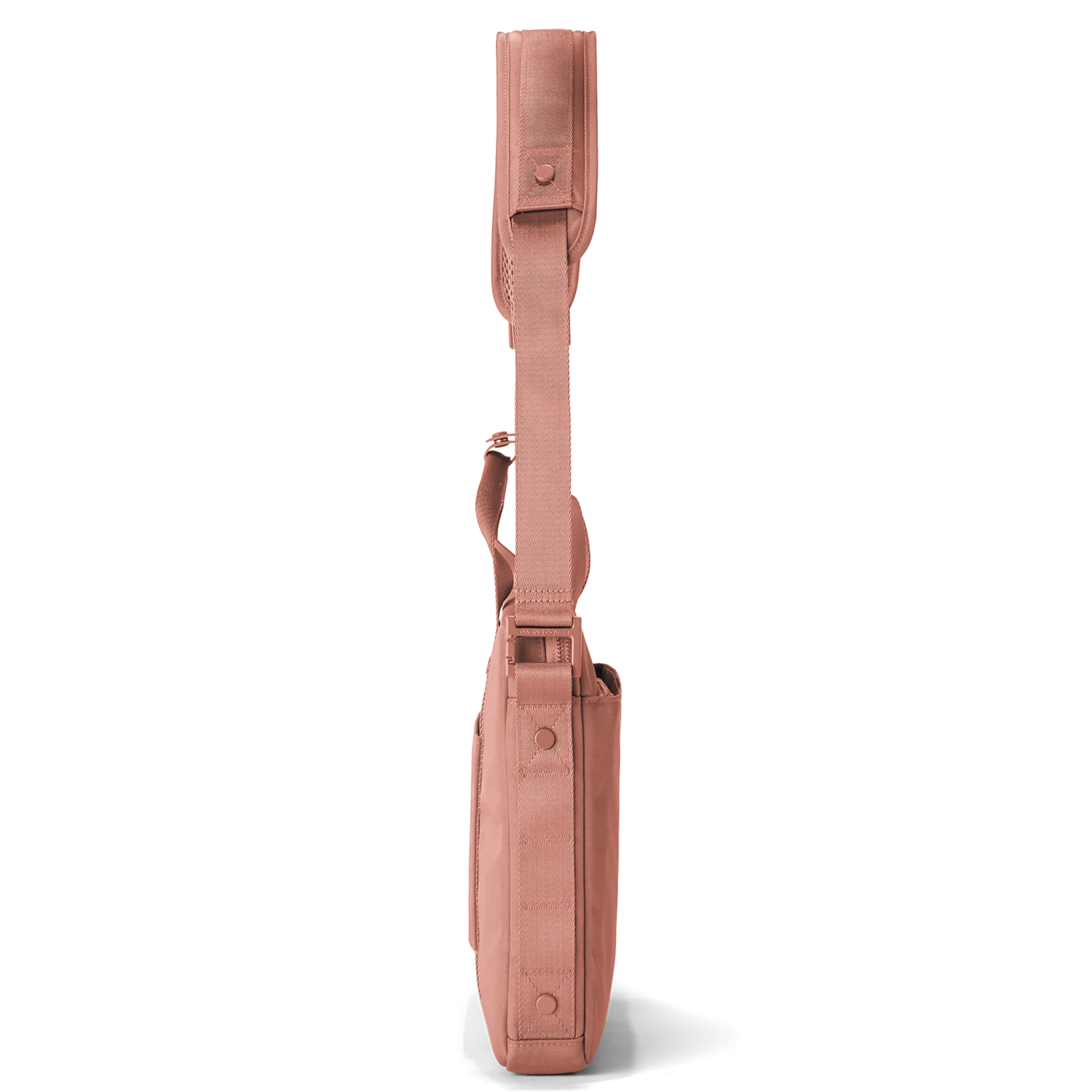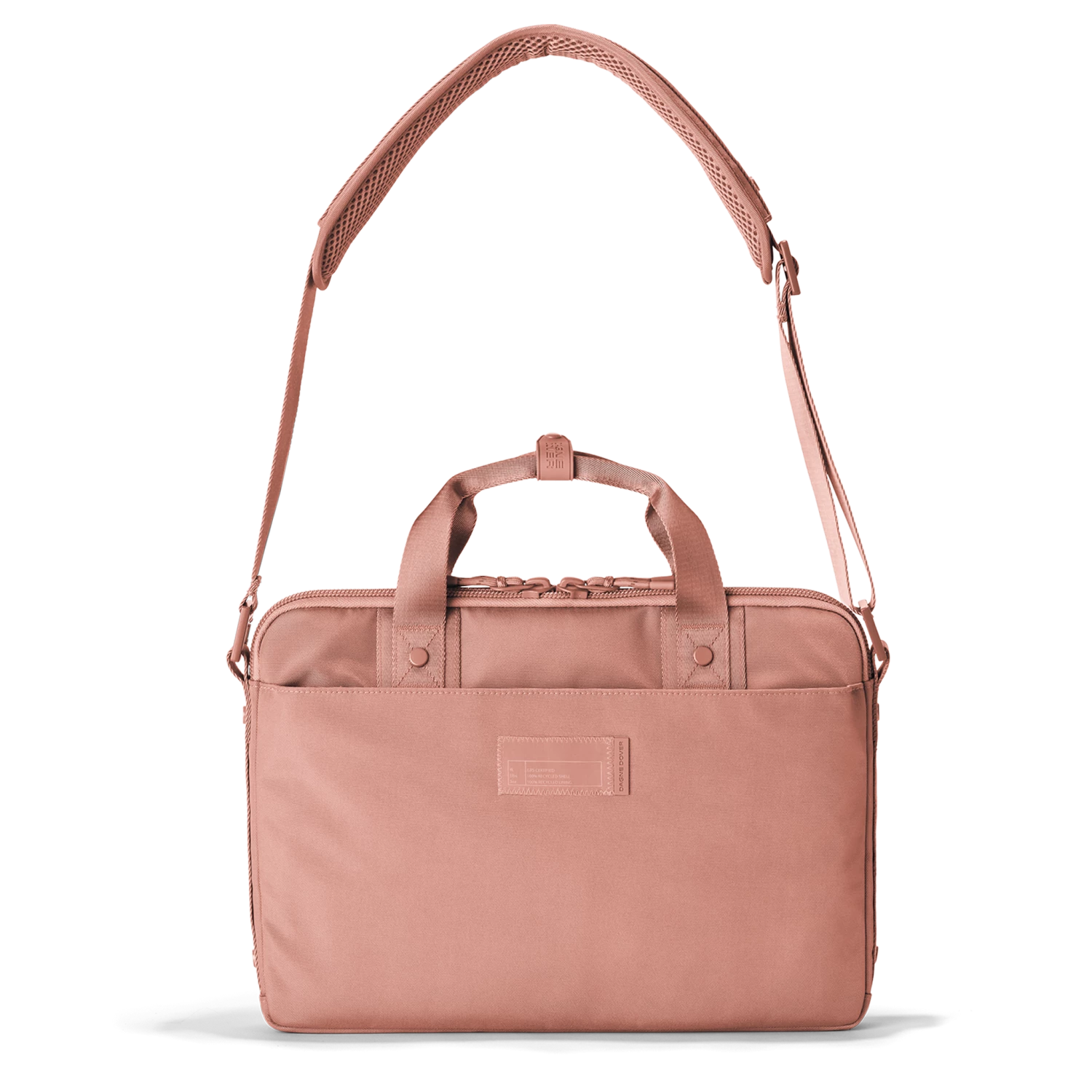 Meet the pink sleek tech bag built for quick trips and commutes, too. This crossbody laptop bag features a padded sleeve to keep your tech safe every step of the way. Easily store it in the overhead bin, under a plane seat, or just grab it and go for your daily walk to the office. With smartly designed organizational features like our signature key leash, elastic pen loops, and plenty of pockets, this sustainable travel laptop bag means business.