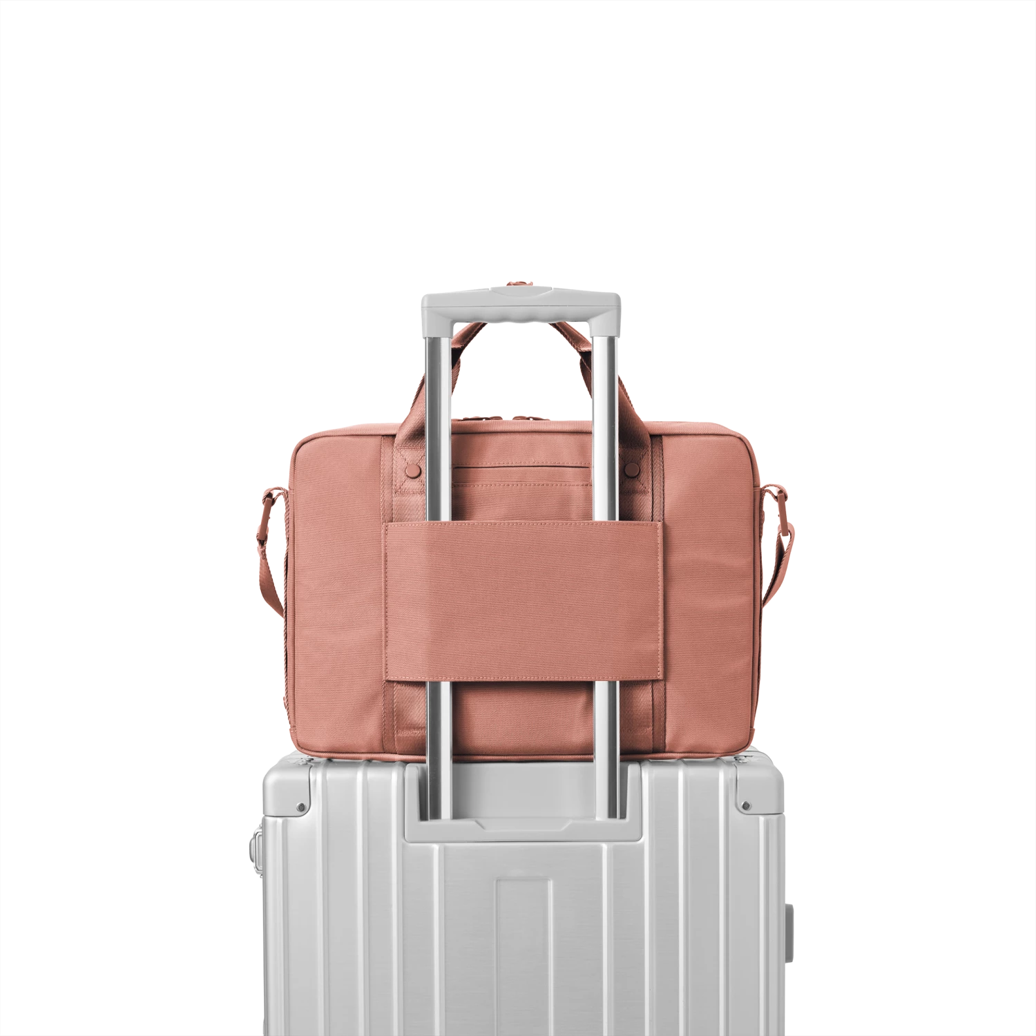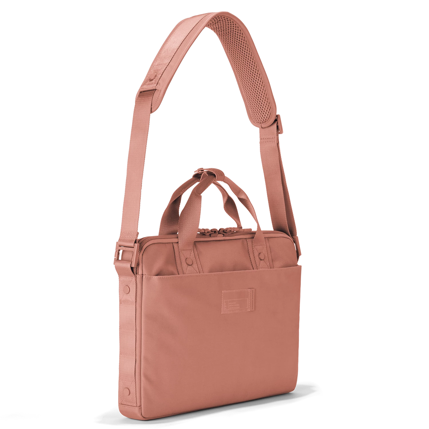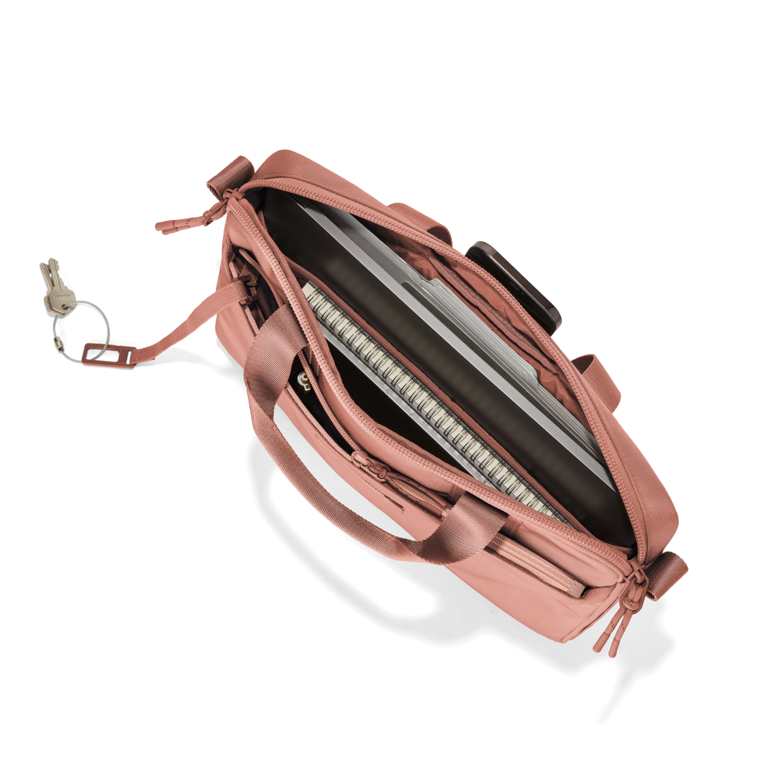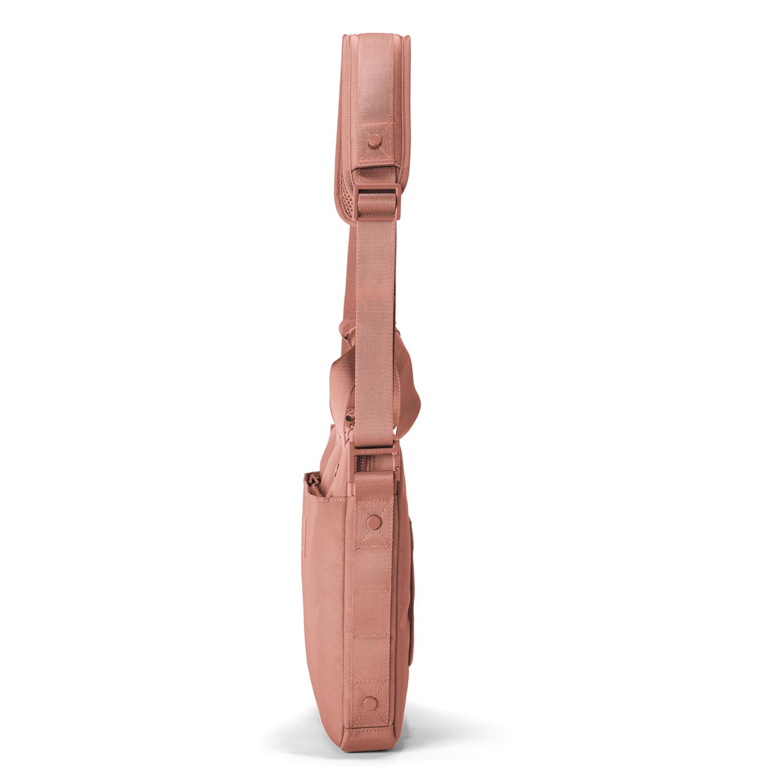 Meet the pink sleek tech bag built for quick trips and commutes, too. This crossbody laptop bag features a padded sleeve to keep your tech safe every step of the way. Easily store it in the overhead bin, under a plane seat, or just grab it and go for your daily walk to the office. With smartly designed organizational features like our signature key leash, elastic pen loops, and plenty of pockets, this sustainable travel laptop bag means business.