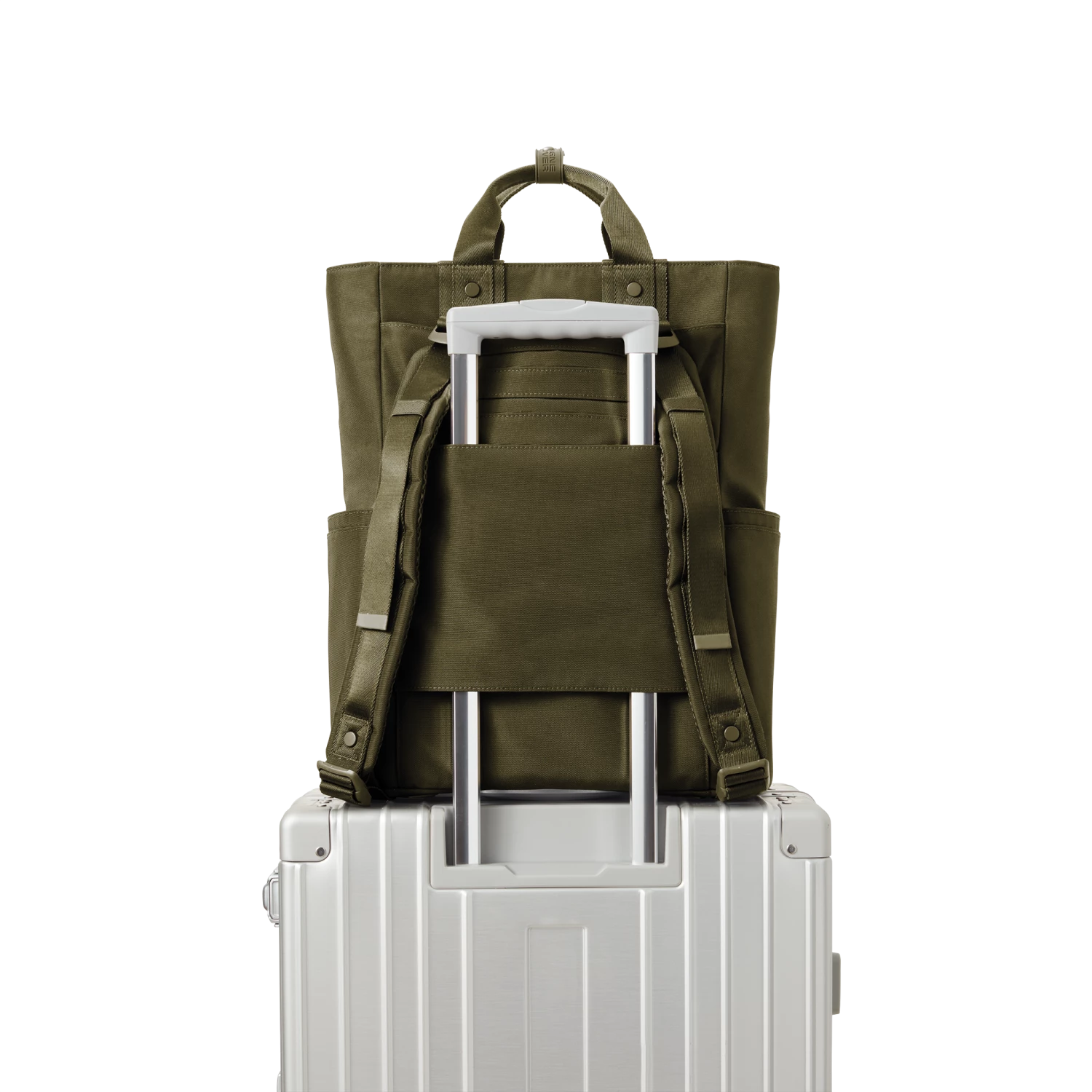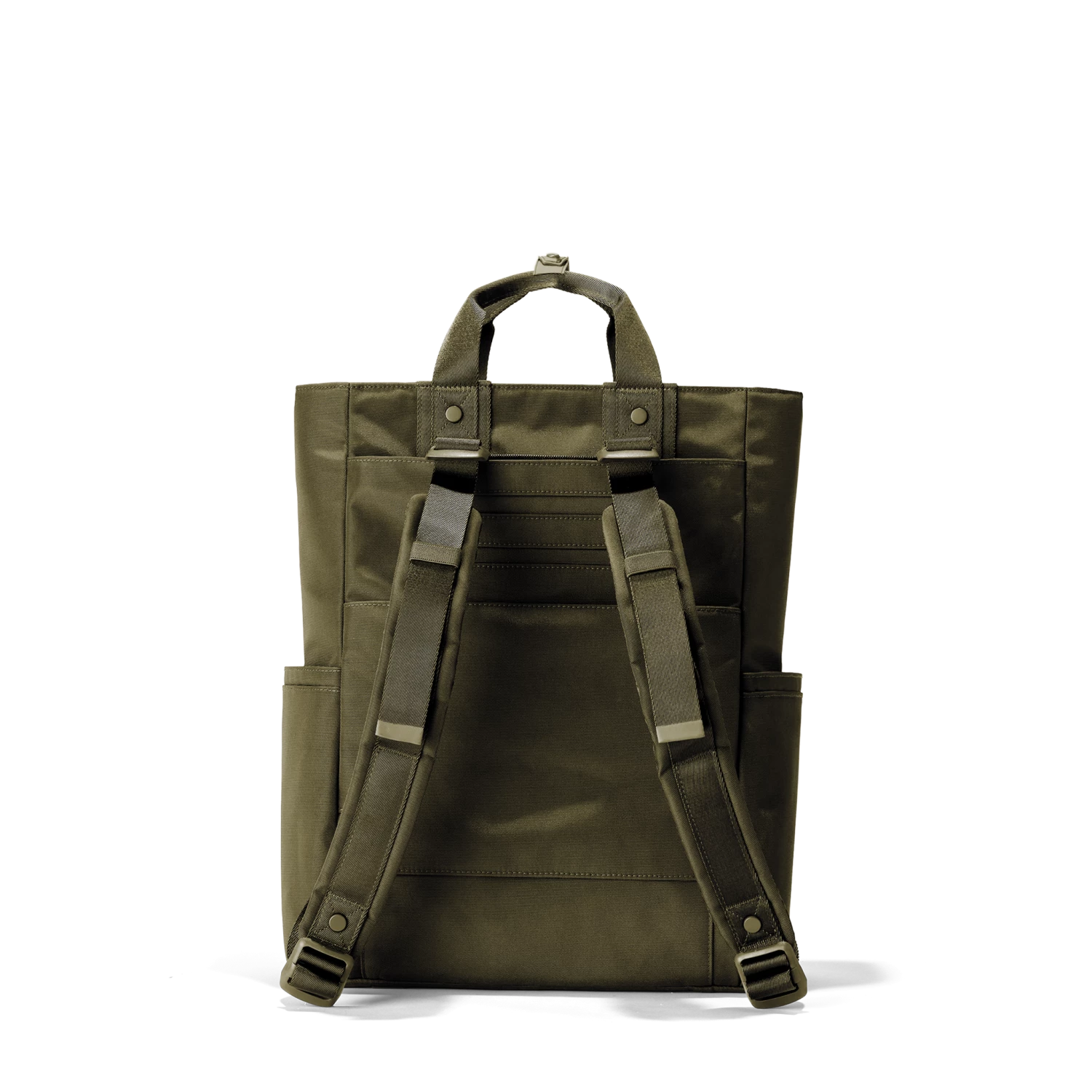 Go hands free (or not) with the convertible backpack tote in dark green that loves a good adventure. Float through the airport with this travel tote backpack on your shoulder, back, or just grab the top handles and go. You’ll always know where your passport, laptop, and travel essentials are with this smartly designed, shapeshifting tote that’s ready to see the world with you. Organized. Recycled. Durable.