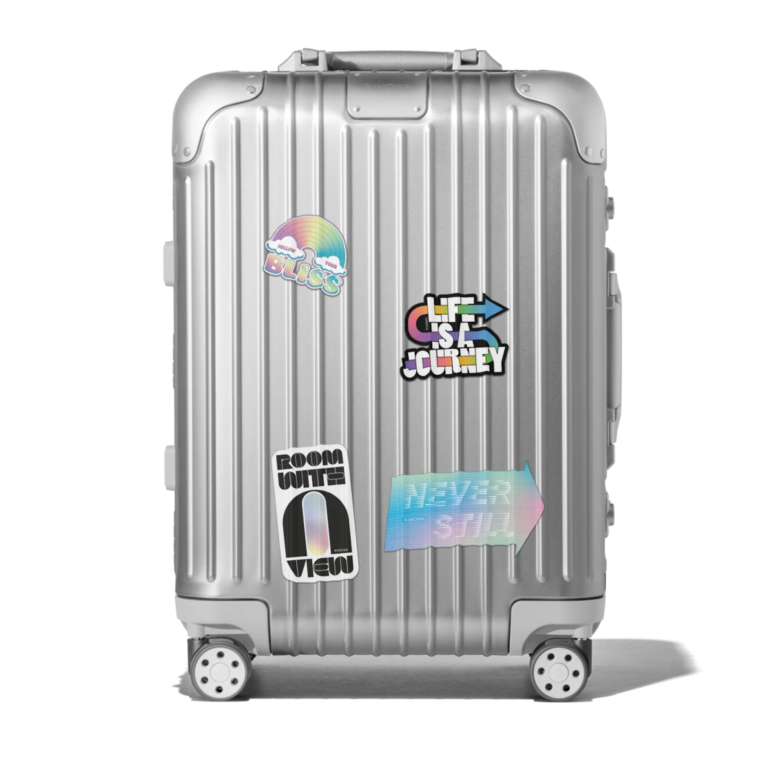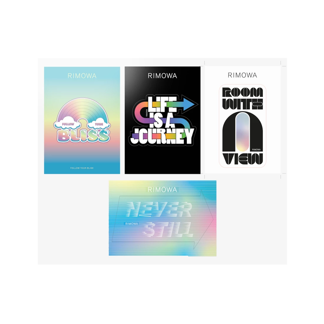 The Motto Sticker Set features four unique graphic-inspired designs that celebrate RIMOWA’s ethos and approach of travel.