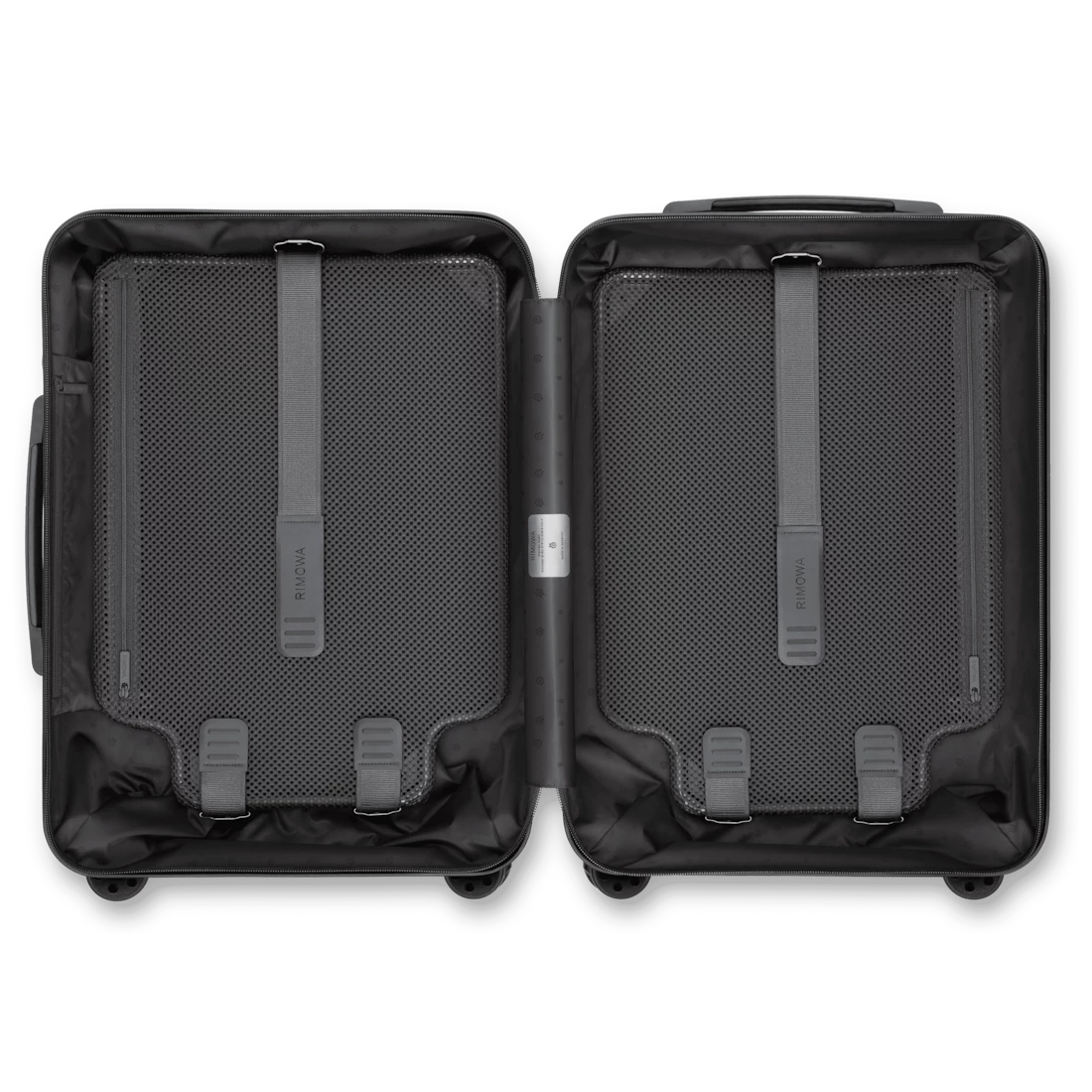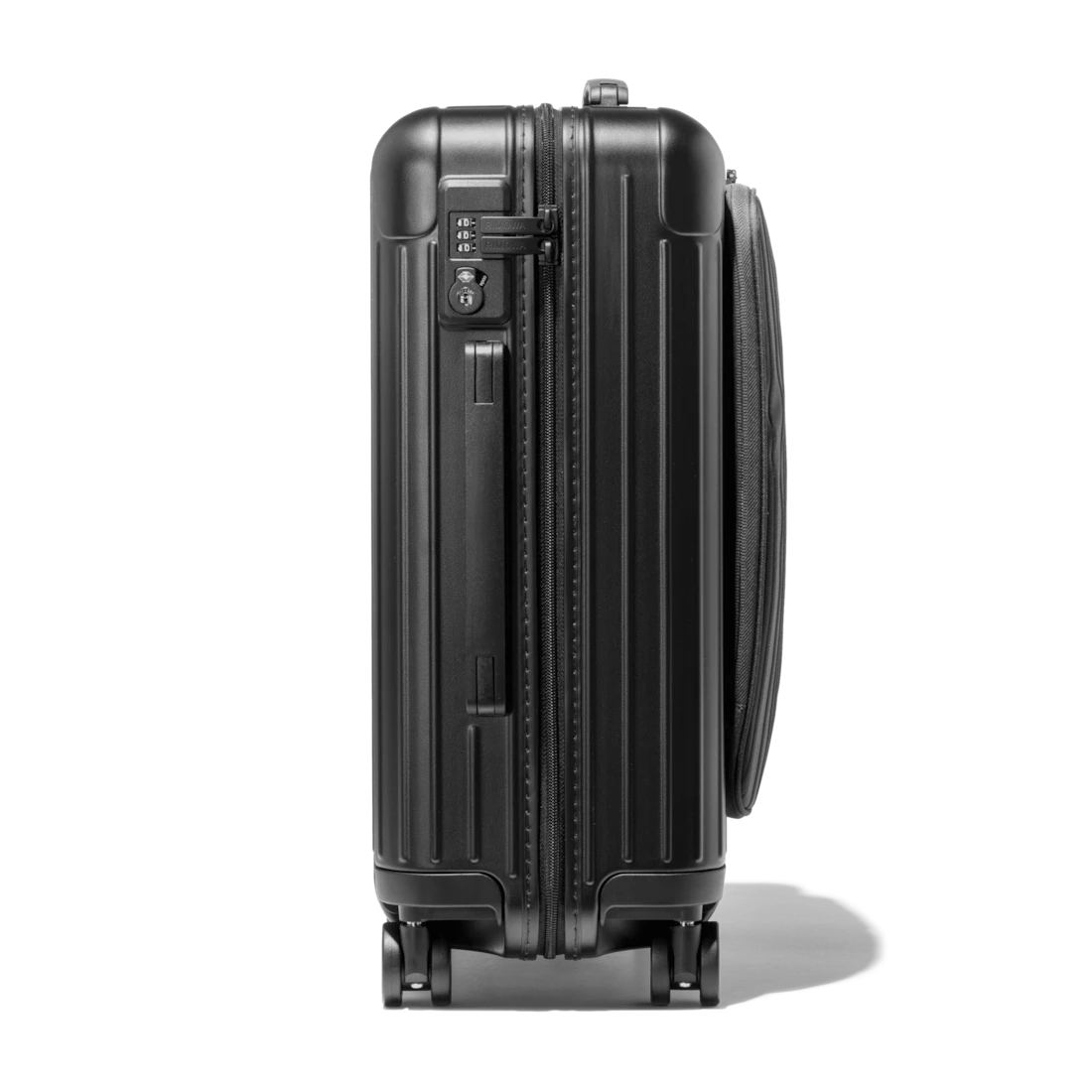 Equipped with a 16-inch laptop compartment, the RIMOWA Essential Sleeve Cabin S in black is the ideal carry-on luggage choice for the modern traveler. Designed to fit in most airplane overhead bins, this resilient and lightweight laptop suitcase is built to carry all your essentials for a 1 to 2 day trip.