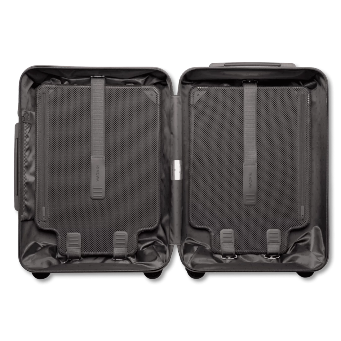 Equipped with a 16-inch laptop compartment, the RIMOWA Essential Sleeve Cabin in slate grey is the ideal carry-on suitcase for the modern traveler. Designed to fit in most airplane overhead bins, this strong, durable and lightweight laptop suitcase is ideal for business trips and short travels of up to 3 days.