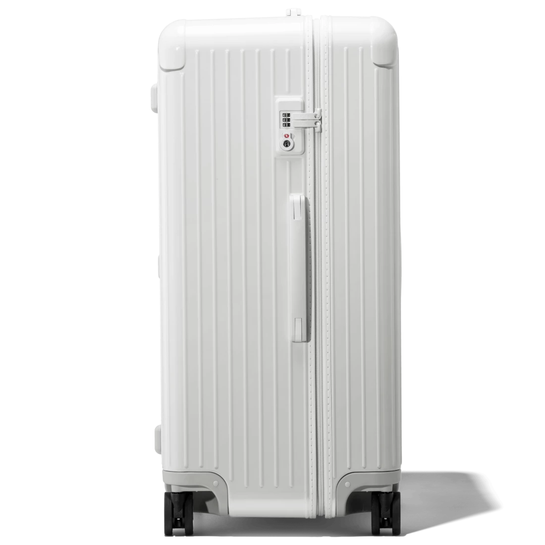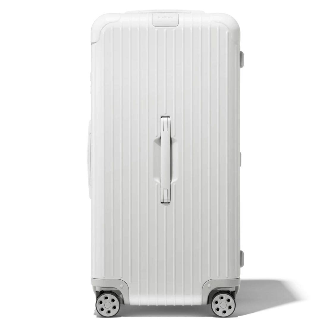 Designed with a distinctive shape inspired by our original trunks, the RIMOWA Essential Trunk Plus in white with a glossy finish is built to offer travelers optimum capacity.