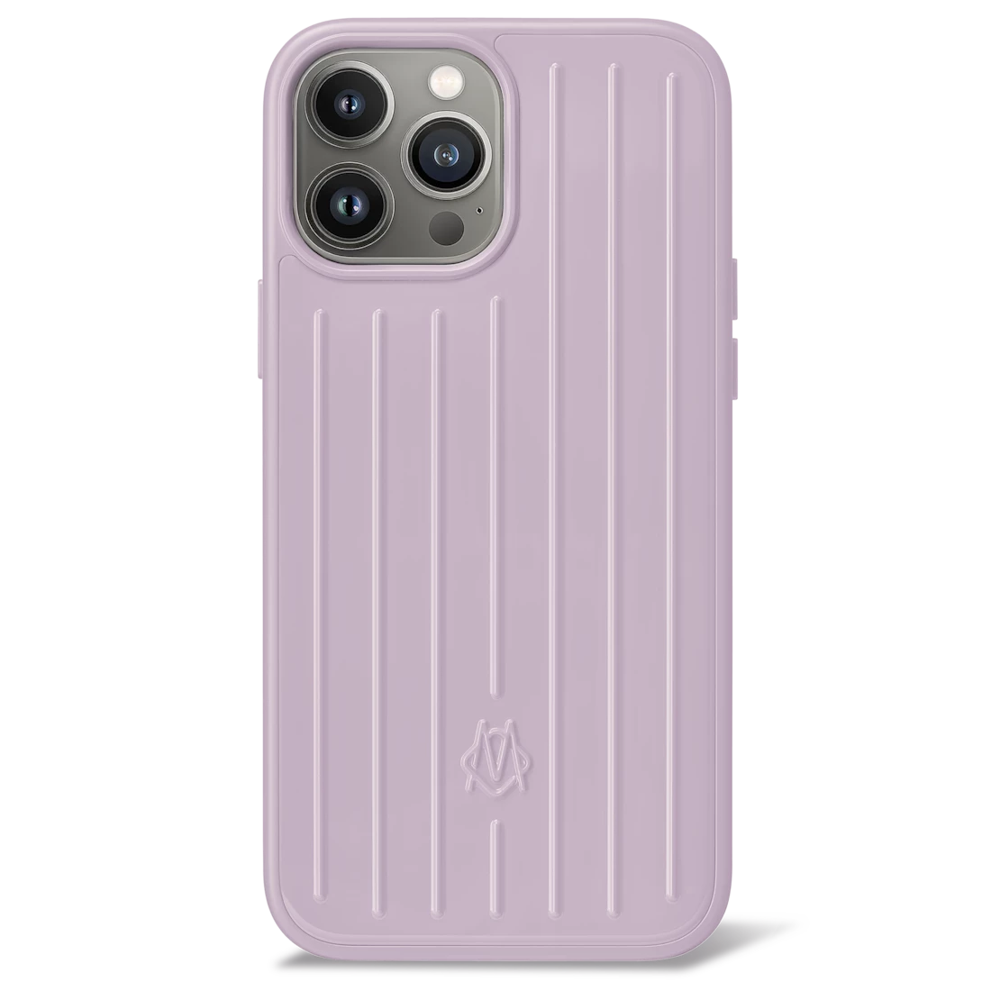 The RIMOWA Lavande Purple iPhone 13 Pro Max Case in polycarbonate combines premium protection with the look of a frequent traveler.