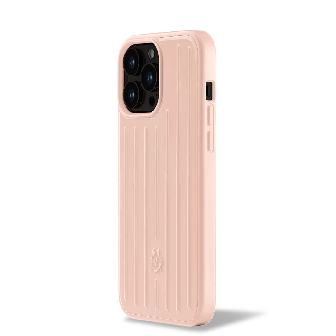 The RIMOWA Petal Pink iPhone 14 Pro Max Case in polycarbonate combines premium protection with the look of a frequent traveler.