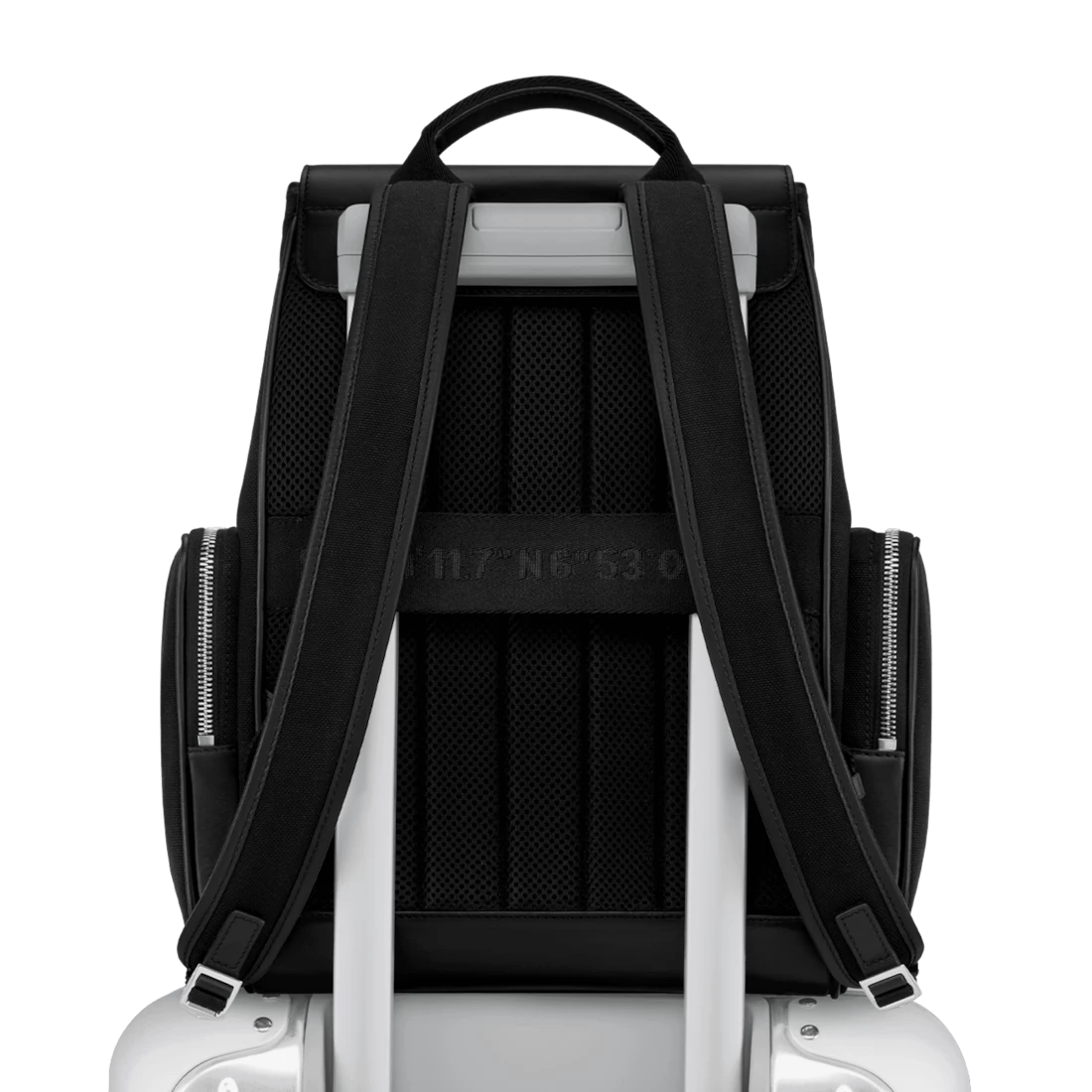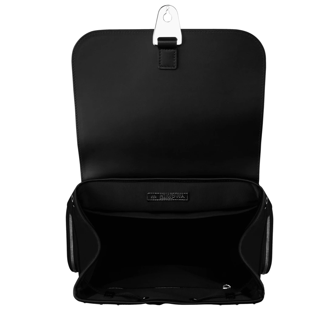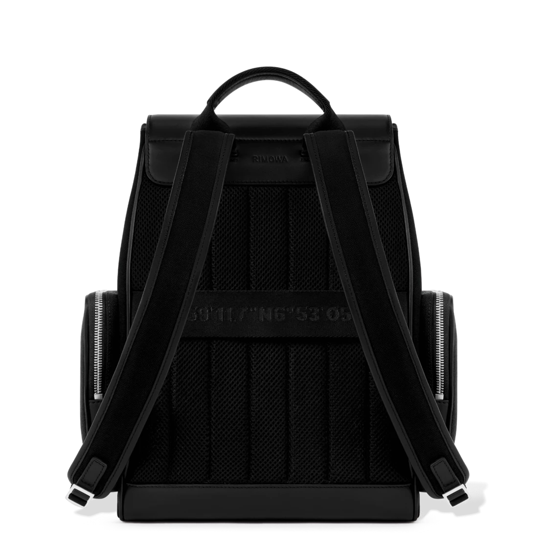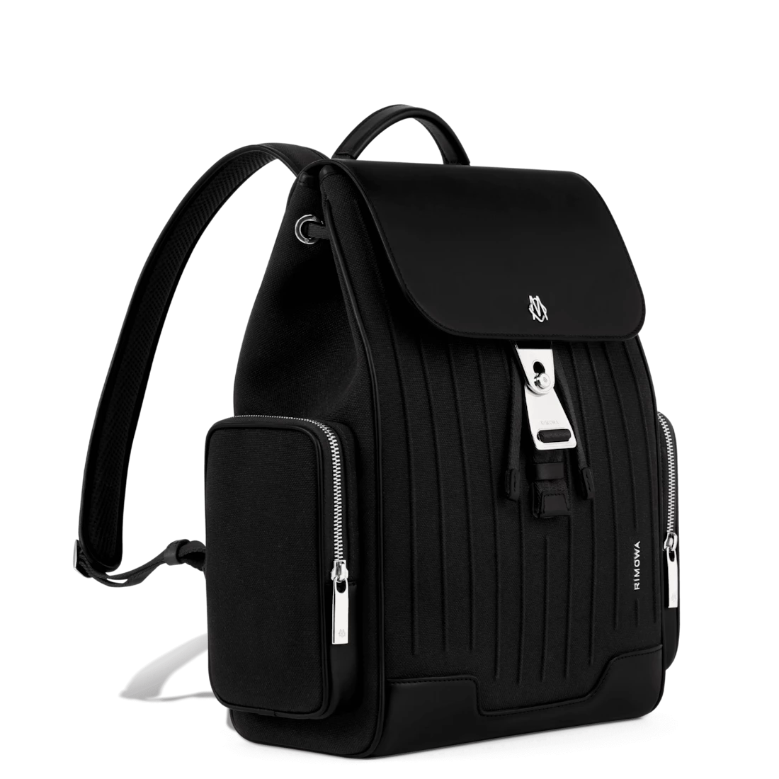 Crafted out of premium materials like durable canvas and full-grain leather, the drawstring RIMOWA Never Still Flap Backpack Small in Black features two side zipped pockets, adjustable shoulder straps (min 22 cm, max 41 cm), a padded back for added comfort, and a flap-top secured by a bespoke magnetic buckle emblazoned with the RIMOWA logo. Inside, a large drawstring compartment and a 13-inch laptop-sized padded pocket easily accommodates daily essentials.