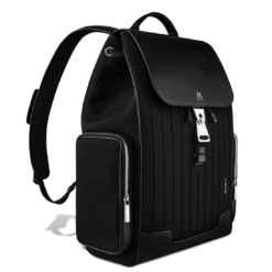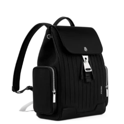 Crafted from supple nylon and rubberized leather, the drawstring RIMOWA Never Still Flap Backpack Large in Black features two side zipped pockets, adjustable shoulder straps (min 22 cm, max 41 cm), a padded back for added comfort, and a flap-top secured by a bespoke magnetic buckle emblazoned with the RIMOWA logo. Inside, a large drawstring compartment and a 16-inch laptop-sized padded pocket easily accommodate daily essentials.