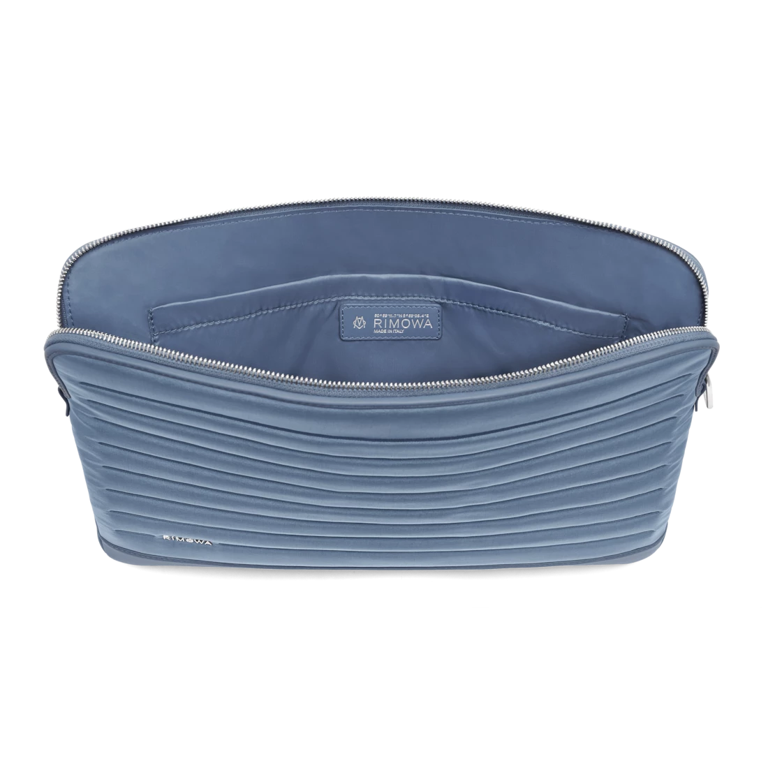 Crafted from supple nylon and full-grain leather, the RIMOWA Never Still Flat Pouch in Arctic Blue provides a spacious home for a laptop of up to 16 inches. It features one large zipped compartment, a travel strap that slips over your wrist or attaches to your suitcase, and a bespoke metallic piece that showcases the RIMOWA logo.