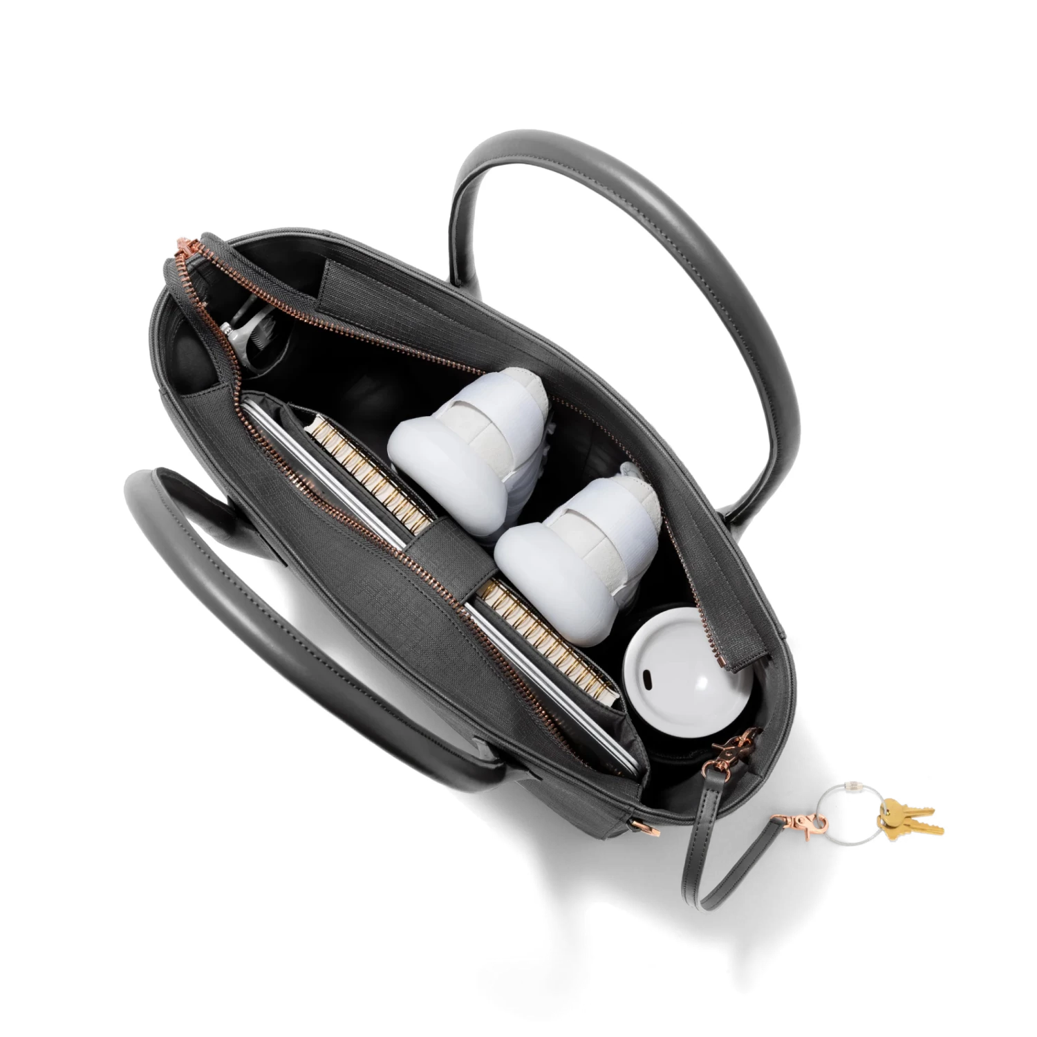 Designed for extended days, the Legend is the ultimate day-to-night carryall. Stylish and spacious, it features a padded compartment for a laptop (or large tablet) and a magnetic closure to keep it secure. Pockets sized purposely for your wallet, phone, metro card and lip balm hold everything in place; an ingenious detachable key leash lets you retrieve your keys without digging around. And one pull of the sturdy, brushed metal zipper conceals it all, elegantly. It’s a smart bag for the urban navigator.
