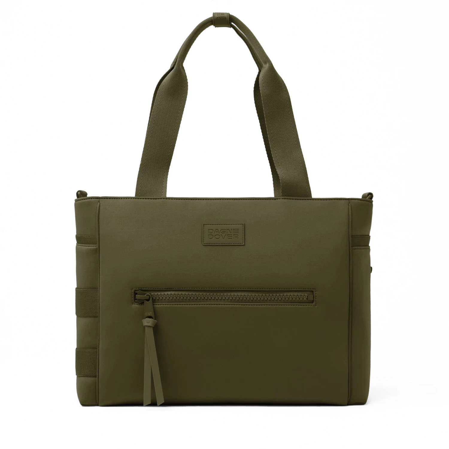 Looks like a normal tote. Acts like a baby bag. The Large Wade is great for parents of newborns who cant leave the house without bringing everything with them. And bring everything they can with pockets for wipes, bottles, and lovies, and whatever else their new bundle of joy needs. But its not just about baby, theres an exterior phone pocket and interior pouches for mom and dad. And since lack of sleep has no doubt clouded your memory, the Large Wade has not one, but two key leashes to help you remember where you put your keys and your little ones binky. Youve got this!