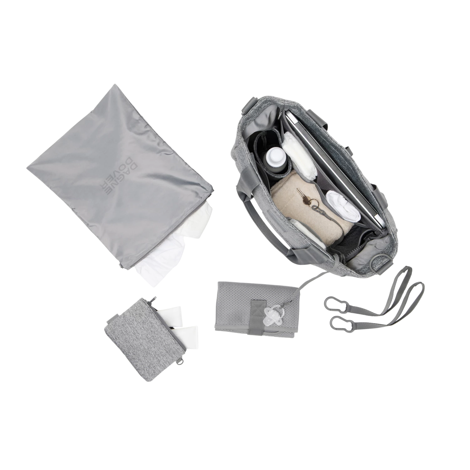 Looks like a normal tote. Acts like a baby bag. The Large Wade is great for parents of newborns who cant leave the house without bringing everything with them. And bring everything they can with pockets for wipes, bottles, and lovies, and whatever else their new bundle of joy needs. But its not just about baby, theres an exterior phone pocket and interior pouches for mom and dad. And since lack of sleep has no doubt clouded your memory, the Large Wade has not one, but two key leashes to help you remember where you put your keys and your little ones binky. Youve got this!